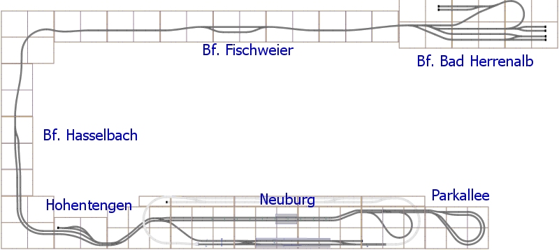 Eckmodule, zwei neugestaltete Zwischenmodule, vier Elemente „Fischweiher” und zwei Elemente „Bad Herrenalb” aufgebaut und elektrisch