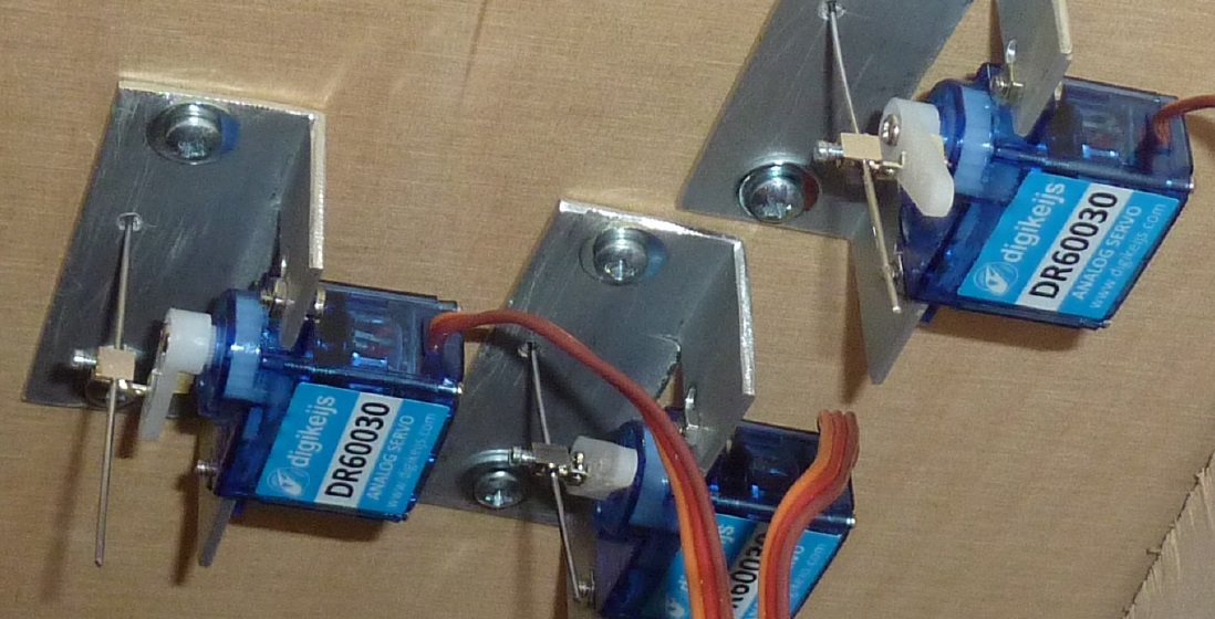 Unsere Weichen werden durch Servos angetrieben. Diese sind heute konkurrenzlos günstig im Preis und erlauben einen schön langsamen Stellvorgang wie im Original. Im Zusammenspiel mit der Modellbahnsteuerung lassen sich die Anschläge und die Stellgeschwindigkeit ganz einfach einstellen. Zur Befestigung der Servos unter der Weiche haben wir einen einfachen und leicht zu verbauenden Halter ausgetüftelt, der dann von Manfred Beyer in Kleinserie gebaut wurde. Diese sind inzwischen unter der Anlage verbaut und warten darauf, an ihre Decoder angeschlossen zu werden.