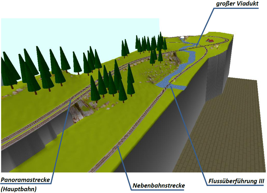 der „Wandseite&rdquo unseres Anlagenraums angelegt wird. Durch diesen führen eine zweigleisige elektrifizierte Hauptstrecke