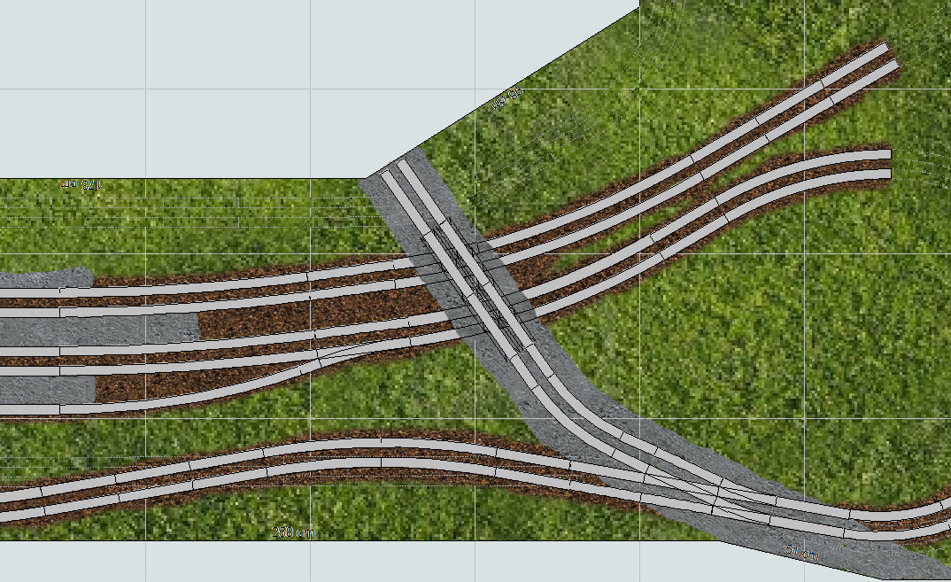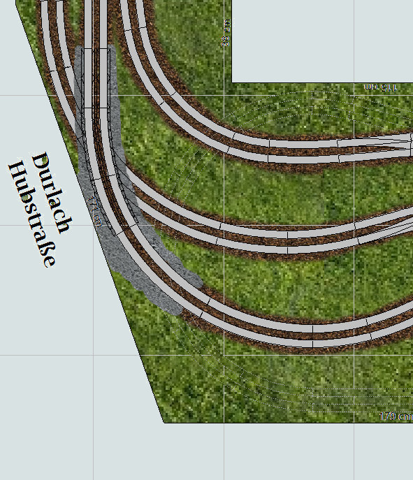 | mit Hilfe der Straßenbrücke kann der Eisenbahntunnel versteckt werden, den es an dieser Stelle in Realität natürlich nicht gibt |