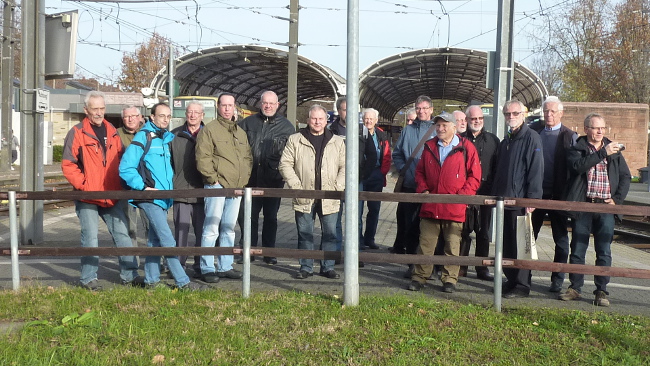 Zunächst war eine Stadtrundfahrt mit einem Sonderzug vorgesehen. Durch zu geringe und zu späte Anmeldungen musste dieses Vorhaben leider aufgegeben werden. Daher fand die Stadtrundfahrt mit normalen Linienzügen statt. Treffpunkt war um 10 Uhr am Hauptbahnhof. Hier trafen sich 15 Gäste und fünf MEKler. Von dort ging es zu Fuß zum Albtalbahnhof.
